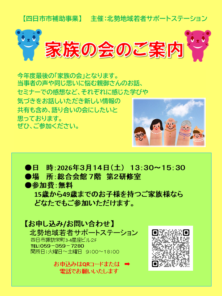 3月の『家族の会』のご案内【3月14日(土)】