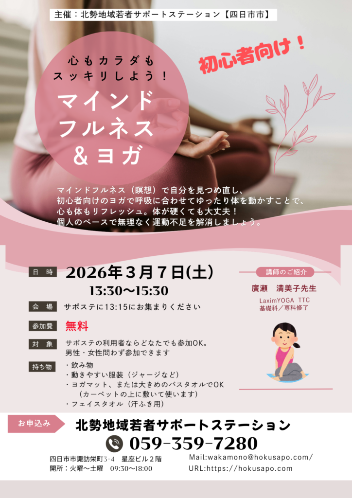 『マインドフルネス&ヨガ』は、ほくサポでも初の講座になります!!