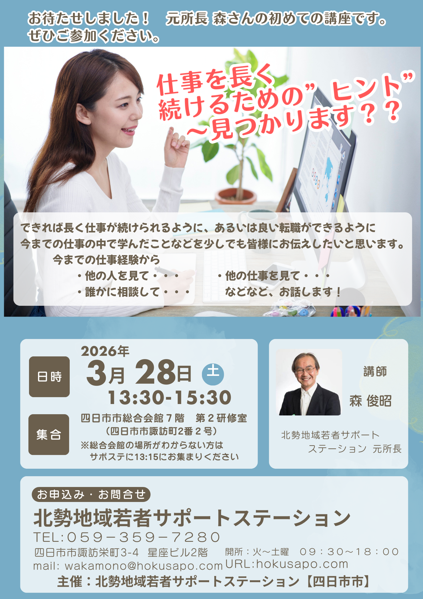 『仕事を長く続けるための”ヒント”~見つかります??』のご案内【3月28日(土)】