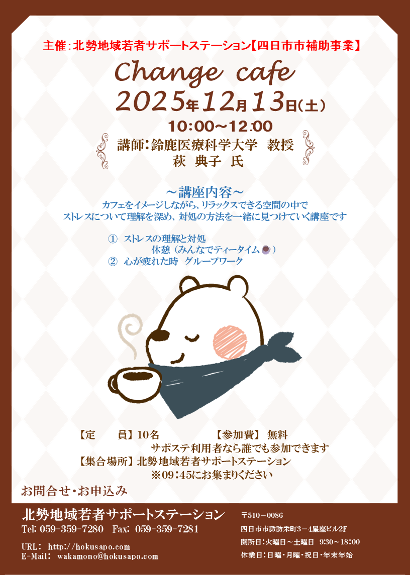 チェンジカフェでは、カフェをイメージしたリラックスできる空間で、