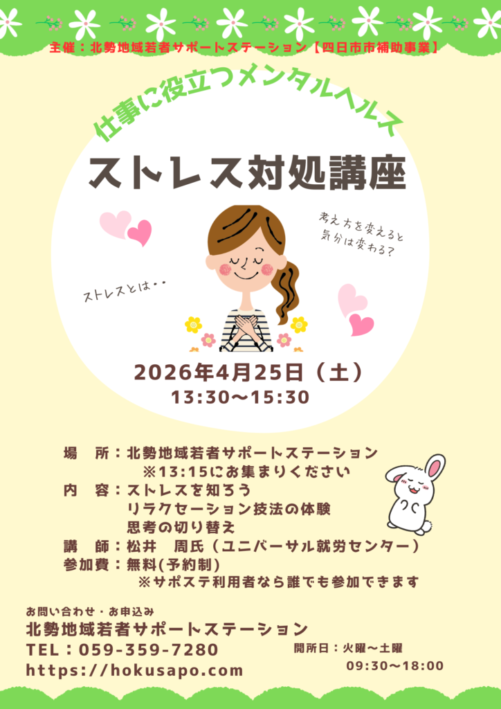 『仕事に役立つメンタルヘルス ストレス対処講座』のご案内です!
