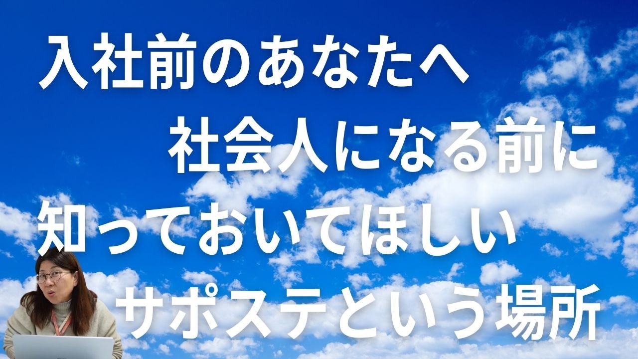 今回のテーマは『入社前のあなたへ~社会人になる前に知っておいてほしいサポステという場所~』です。