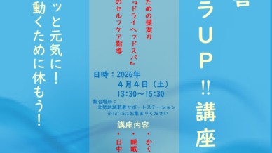 お知らせ 生活改善 寝ヂカラUP!!講座のご案内【4/4(土)】